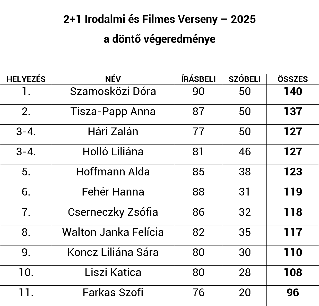 A 2025/2026-os tanévben is elindul az ELTE Apáczai Csere János Gyakorló Gimnázium és Kollégium által kiírt 2+1 IRODALMI ÉS FILMES VERSENY.
